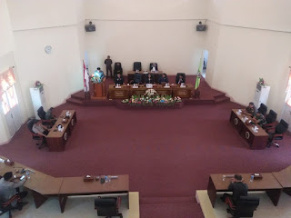 | Foto suasana persidangan penyampaian LKPJ 2018 di ruang paripurn DPRD Halbar Rabu,10/4/2019 |