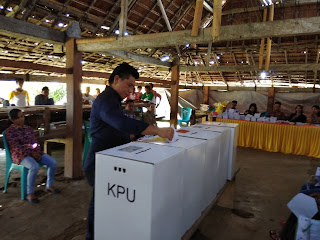 JAILOLO,legalpoat.id-Bupati Halmahera Barat (Halbar), Danny Missy, terpisah dengan Joula Tambun Missy, (Istrinya), saat memberikan hak suara pada pemilihan serentak calon DPRD kabupaten/kota, DPRD Provinsi, DPD, DPR RI, dan calon Presiden RI, Rabu, 17 April 2017 tadi.