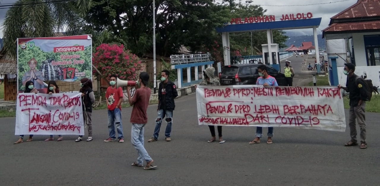 "Pemkab ini tidak memiliki konsep penanganan Covid-19 yang jelas. Daerah lain sudah ambil tindakan dan Halbar sendiri belum," ungkap Presidium Jong Halmahera, Fandi M. Nasir dalam Orasi, Minggu (26/4/2020), sekitar pukul 16.00 WIT, tepat di pintu masuk pelabuhan Jailolo.