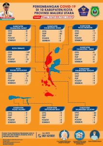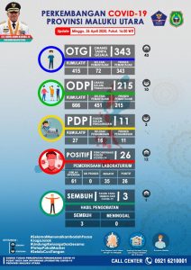 Ternate.LegalPost.Id-Minggu 26 April 2020, pasien positif corona bertambah 12 orang. penambahan drastis itu membuat jumlah total kasus corona di Malut jadi 26 kasus.