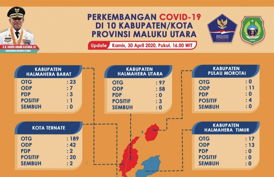 Hal ini disampaikan Jubir Gugus Tugas covid-19 Malut Alwiah Assagaf pada konfrensi pers Kamis (30/4/2020),Berdasarkan hasil pengolahan data dipusat data dan informasi gugus tugas covid-19 Maluku Utara,yang diperoleh dari dinas kesehatan Kabupaten/Kota,dan KKP kelas lll Ternate.