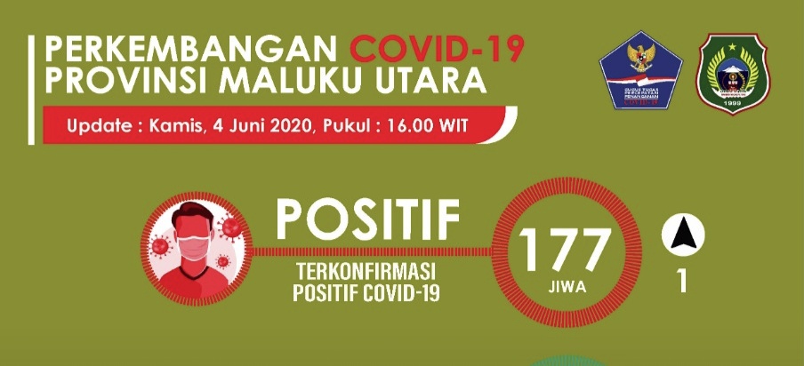 Berdasarkan data sampai hari ini kasus positif Covid -19 berdasarkan TCM CB Ternate terkonfirmasi 1 orang di Kota Ternate, sehingga total 177 orang terkonformasi positif Covid-19 di Malut. Sementara pasien yang meninggal 18 orang atau terjadi penambahan dua orang, yakni satu orang di Ternate dan 1 orang dari Tidore. Untuk pasien sembuh masih tetap 30 orang.