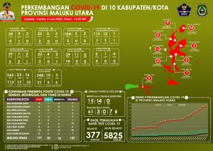 Berdasarkan data sampai hari ini kasus positif Covid -19 berdasarkan TCM CB Ternate terkonfirmasi 1 orang di Kota Ternate, sehingga total 177 orang terkonformasi positif Covid-19 di Malut. Sementara pasien yang meninggal 18 orang atau terjadi penambahan dua orang, yakni satu orang di Ternate dan 1 orang dari Tidore. Untuk pasien sembuh masih tetap 30 orang.