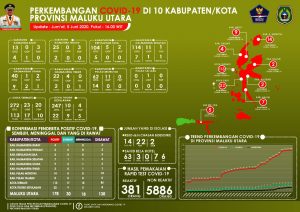 Data gugus tugas penanganan covid-19 diprovinsi Maluku Utara(Malut) yang didapatkan menyatakan bahwa Jumat ini hanya ada penambahan satu kasus,dan jumalah sembuh masih pada posisi yang sama 30 jiwa,dan meninggal 18 jiwa.(iin)