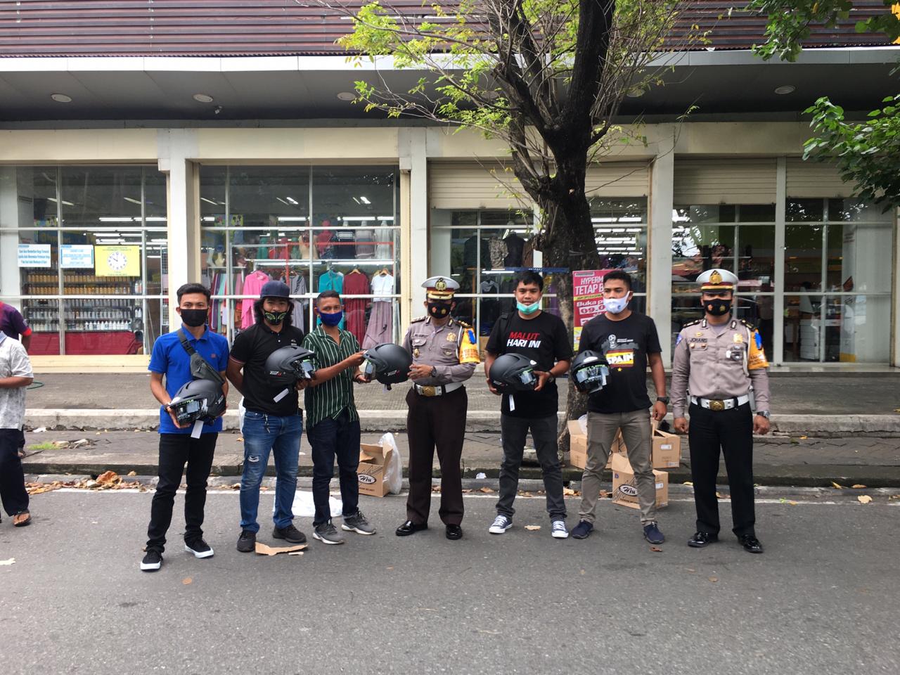Ditlantas Polda Malut Bagi Helm Dan Masker Gratis