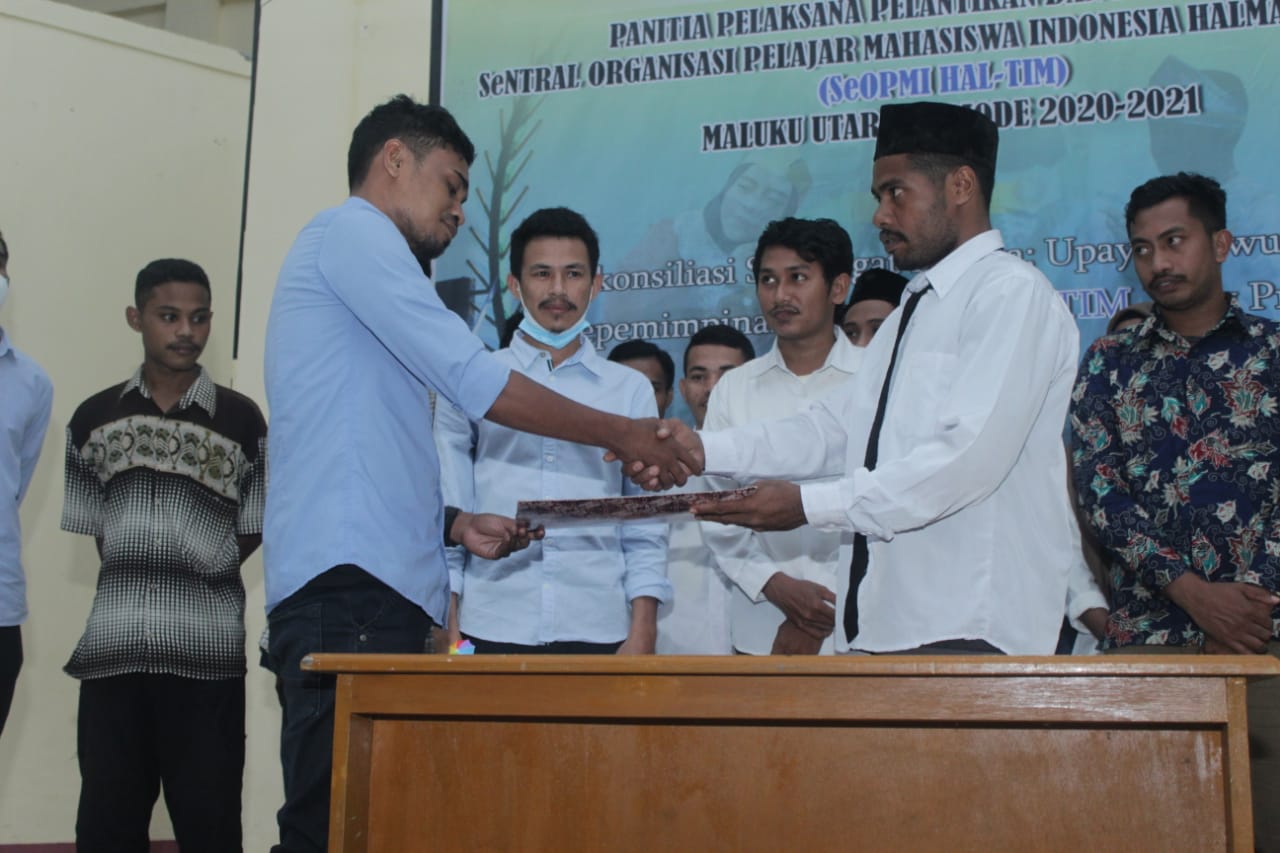 Ternate,legalpost.id_ Sentral Organisasi Pelajar Mahasiswa Indonesia Halmahera Timur (SeOPMI HAL-TIM) Maluku Utara Periode 2020-2021 resmi menggelar pelantikan dan Rapat Kerja bertempat di auditorium Asrama Haji ternate pecan kemarin.