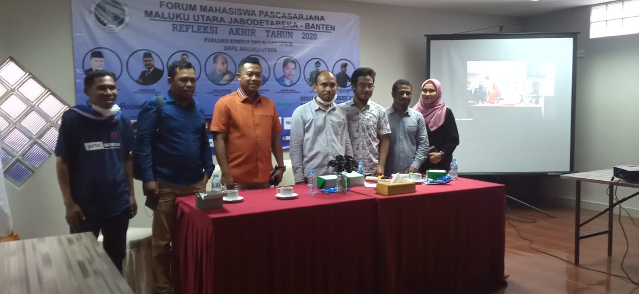 JAKARTA,Legalpost id - Evaluasi Kinerja DPD RI dan DPR RI Dapil Maluku Utara oleh Organisasi Forum Mahasiswa Pascasarjana Maluku Utara se Jabodetabek Banten (FORMAPAS) dengan menggelar refleksi akhir tahun 2020 secara daring dan luring di Hotel Jambrut Jakarta, Senin (28/12/2020).