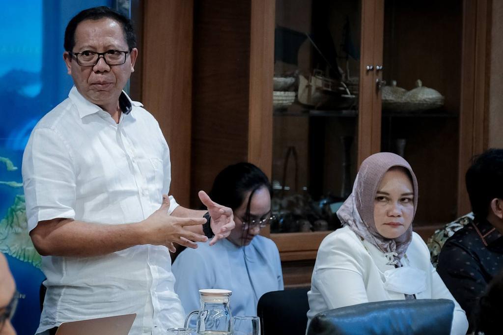 Sekda Halbar Syahril Abduradjak, didamping Kadis Parpora Fenny Kiat, saat berbicara didepan Menteri Parekraf saat pertemuan berlangsung.