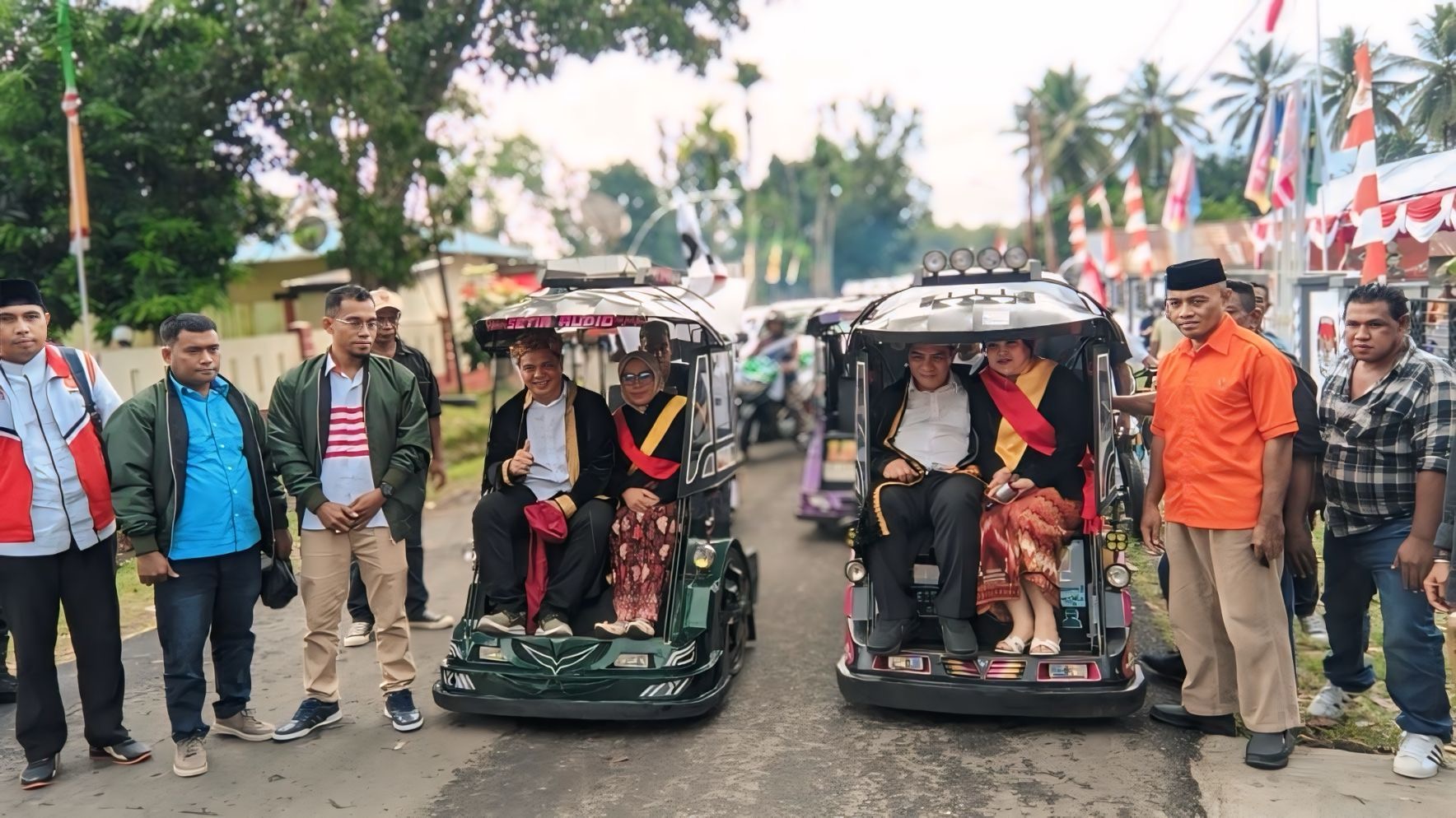 Paslon dengan selogan Rebut Kembali itu setelah dari desa Gamtala melanjutkan konvoi ribuan massa mendaftarkan diri sebagai Calon Bupati dan Wakil di KPU. Namun saat menuju KPUD DINAMIS menggunakan kendaraan bentor dengan berpakaian adat suku Sahu.