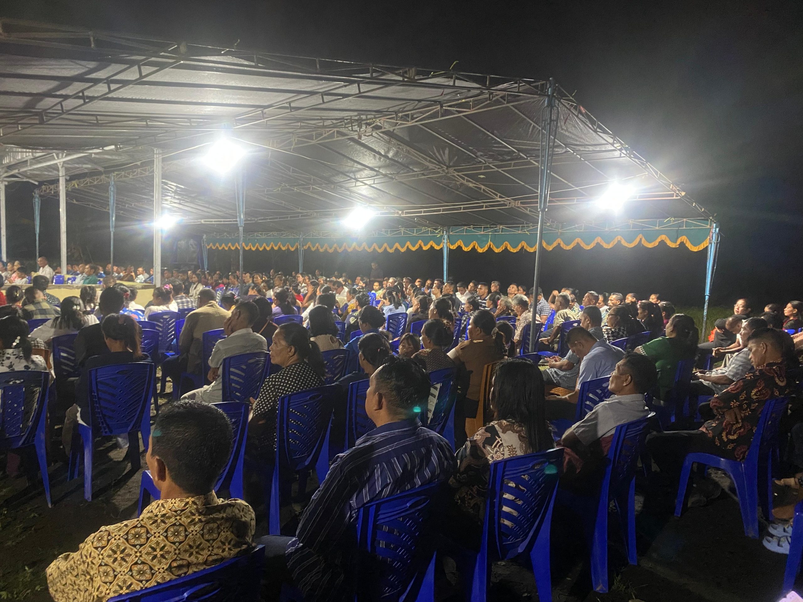 Ibadah bersama yang dihadiri oleh ratusan warga, itu digelar di Kediaman James Uang, Desa Tuguis Kecamatan Ibu Tabaru, Minggu (10/11).